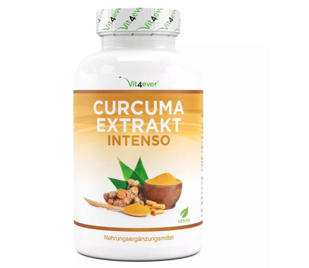 Kurkuma-Extrakte intensivDas indische Gewürz Kurkuma wird seit Jahrhunderten als Heilmittel in der traditionellen indischen Medizin verwendet. Gelbwurzel-Kurkuma (Curcuma longa L.) stammt aus der Familie der Ingwergewächse, auch Chinesische Wurzel oder Gelber Ingwer genannt, und wird nicht nur als Gewürz dem indischen Curry zugesetzt, sondern ist auch seit Jahrtausenden Bestandteil der traditionellen asiatischen und indischen Medizin . Kurkuma kam im Mittelalter über die Seidenstraßen nach Europa und die positiven und stark antioxidativen Eigenschaften von Kurkuma werden in Europa erst seit wenigen Jahren genutzt. Dies ist besonders gut am hohen ORAC-Wert zu erkennen. Kurkuma hat beispielsweise einen ORAC-Wert von 159.277 und liegt damit im oberen oberen Bereich der ORAC-Liste. Der ORAC-Wert (Oxygen Radical Absorbance Capacity) gibt Auskunft darüber, wie viele freie Radikale pro Gramm ein Lebensmittel neutralisieren kann. Normales, nicht extrahiertes Kurkuma enthält meist nur 2% - 3% und sehr hochwertige bis zu 5% Curcuminoid / Curcumin, welches der eigentliche Wirkstoff im Kurkuma ist. Zudem ist Kurkuma fettlöslich und kann aufgrund seiner hydrophoben Eigenschaften (wasserabweisend) nur mäßig aus dem Magen-Darm-Trakt aufgenommen werden. Wenn Sie beispielsweise 250 mg des eigentlichen Wirkstoffs Curcuminoide / Curcumin einnehmen möchten, bräuchten Sie für ein normales Kurkumapulver mit 2,5 % Curcuminoiden / Curcumin 10.000 mg / 10 g Kurkumapulver. Sicherlich sieht man auf den ersten Blick, dass man mit dieser Menge an Kurkumapulver schnell an seine Grenzen stößt und der „Alltag“ schnell zur „Alltagsquälerei“ werden kann. Zudem ist die Aufnahmefähigkeit zum jetzigen Zeitpunkt noch ungewiss. Und genau hier setzt unser Vit4ever Curcuma Extract Intenso an!Mit nur 2 Kapseln täglich versorgt Sie Curcuma Extract Intenso mit 515 mg reinen Curcuminoiden aus 2 zuverlässigen und hochwertigen Kurkuma-Quellen (500 mg Bio-Kurkuma-Pulver mit 5 % und 500 mg Kurkuma-Extrakt mit 98 %). Gemessen am reinen Curcuminoidgehalt entspräche dies einer Menge von ca. 17.150 mg Kurkumapulver! Zusätzlich wurde das Produkt mit dem Wirkstoffverstärker (Pfefferextrakt / Piperin) optimiert, wodurch die Aufnahmegeschwindigkeit um ein Vielfaches gesteigert werden kann. Highlights auf einen Blick: