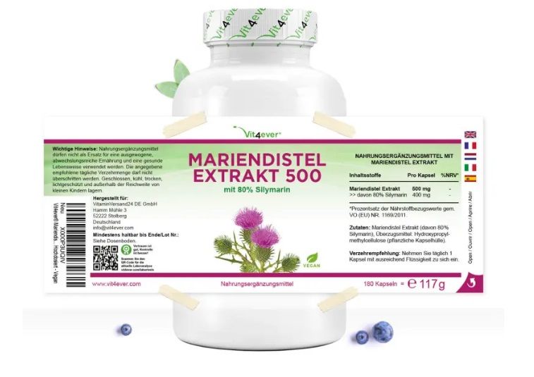 Vit4ever Mariendistel Extrakt 500 - 500mg -180 Kapseln