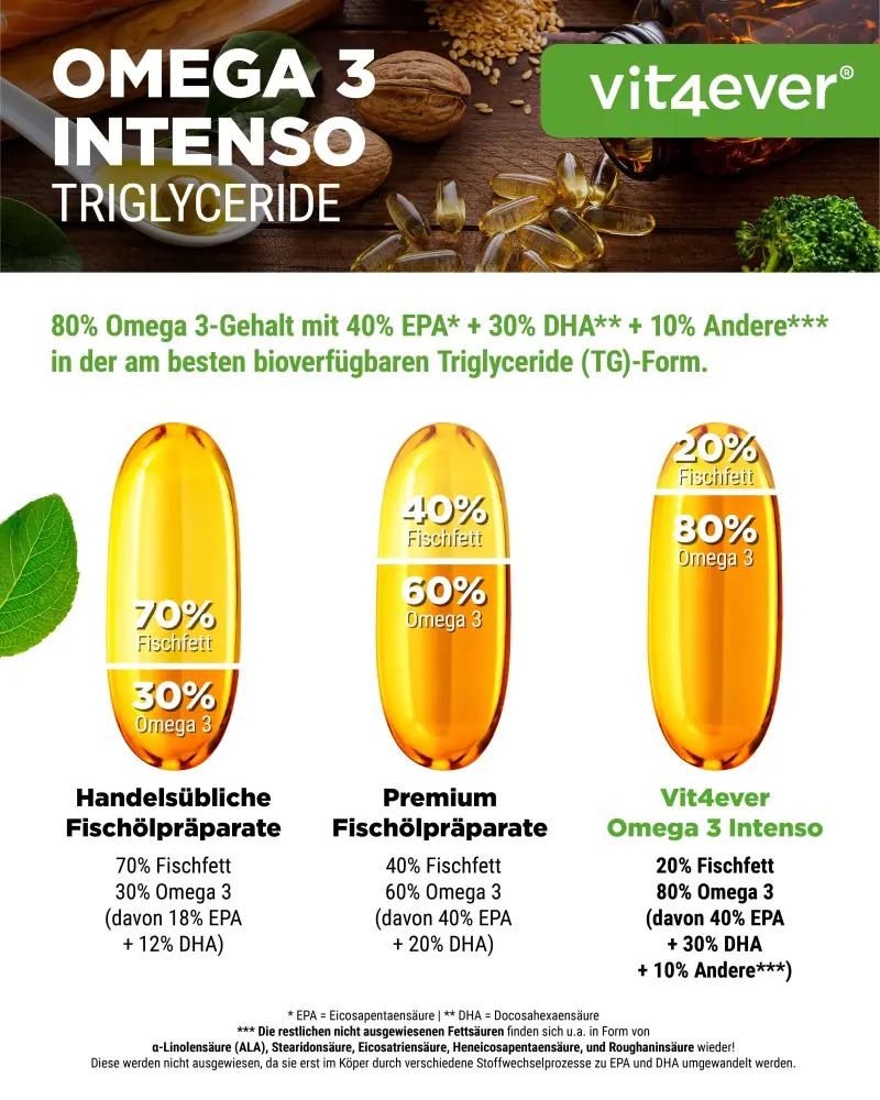 - Hochdosierte Omega-3-Kapseln mit mindestens 80 % Fettsäuregehalt