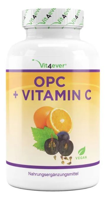 Die Vit4ever Traubenkern Kapseln angereichert mit hochwertigem Vitamin C, sind der perfekte Mix an Antioxidantien in Kapselform. Hauptbestandteil der Kapseln ist OPC, welches eine Abkürzung für Oligomere Proanthocyanidine ist. OPC wird aus verschiedenen Pflanzen, vor allem aber aus Traubenkernen der roten und blauen Weintraube gewonnen und gelten als sekundäre Pflanzenstoffe, die zur Gruppe der Flavanoide gehören. Vereinfacht gesagt handelt es sich um eine Aneinanderreihung pflanzlicher Moleküle mit antioxidanten EigenschaftenHighlights auf einen Blick: