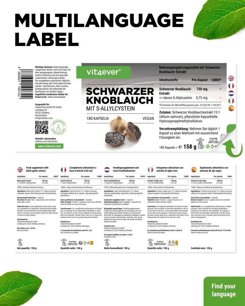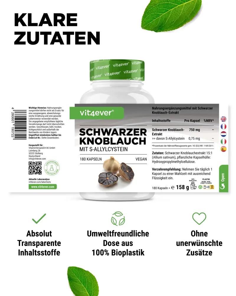 Vit4ever Schwarzer Knoblauch Extrakt - mit 750 mg 180 Kapseln