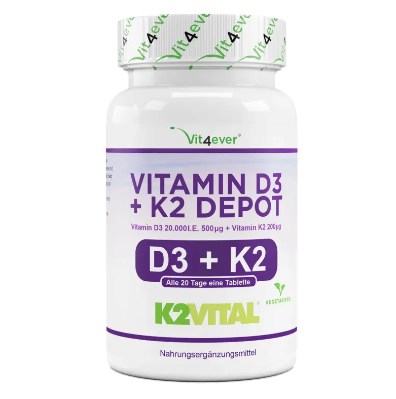 Sowohl das als Sonnenvitamin bekannte Vitamin D3 als auch das eher unbekannte K Vitamin gelten als wichtige Vitamine für den menschenlichen Körper. Eine Kombination aus Vitamin D3 & Vitamin K2 kann sinnvoll sein, der Grund hierfür ist, dass das Vitamin K2 und D3 nur im Team optimal funktionieren. Werden Vitamin D Präparate eingenommen, produziert der Körper lebenswichtige Proteine für den Calcium-Stoffwechsel im Körper. Diese Proteine können allerdings nur mit ausreichend Vitamin K2 aktiviert werden, was bedeutet, das eine erhöhte Zufuhr an D3 auch einen erhöhten Vitamin K2 Bedarf mit sich bringt. |
