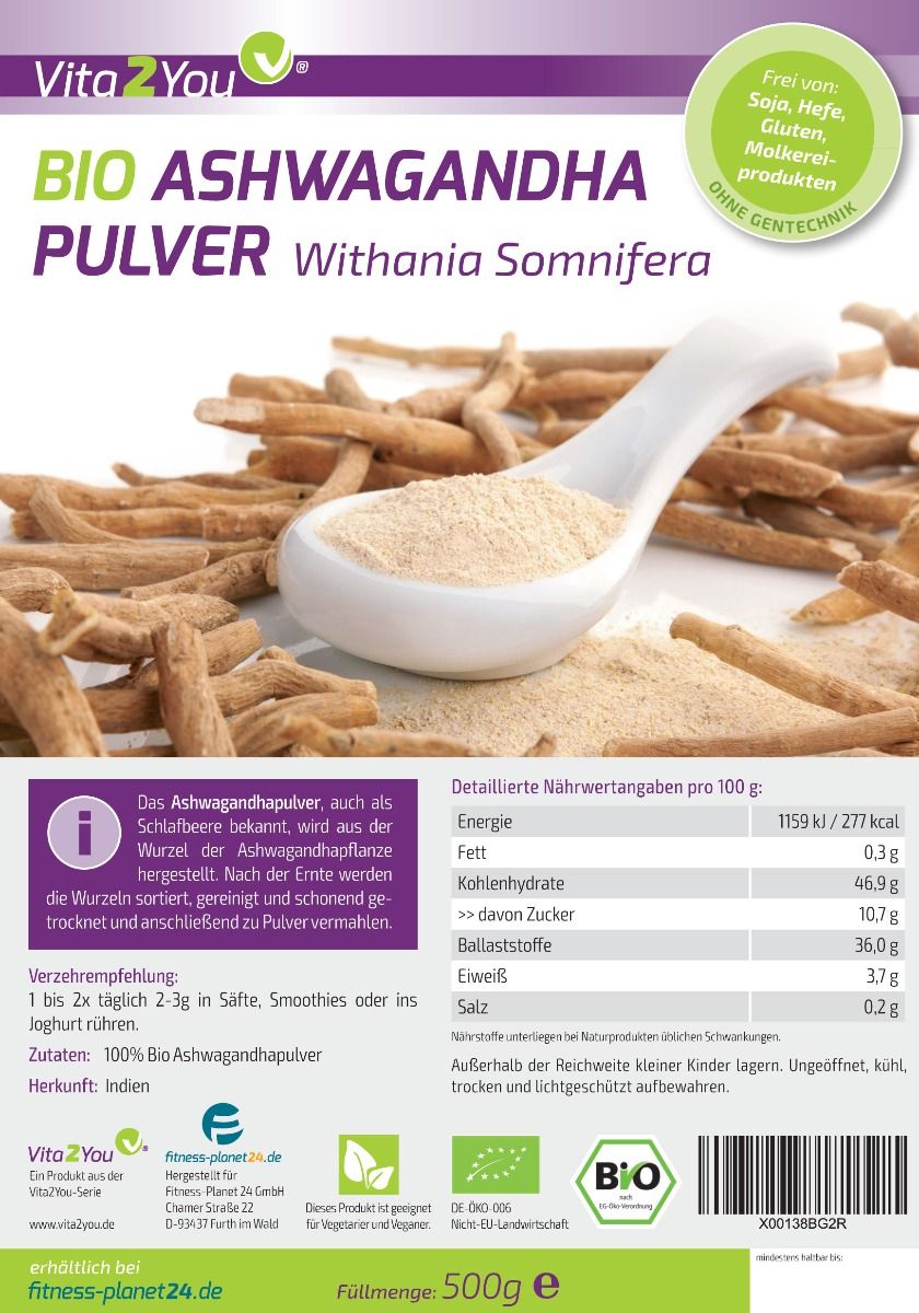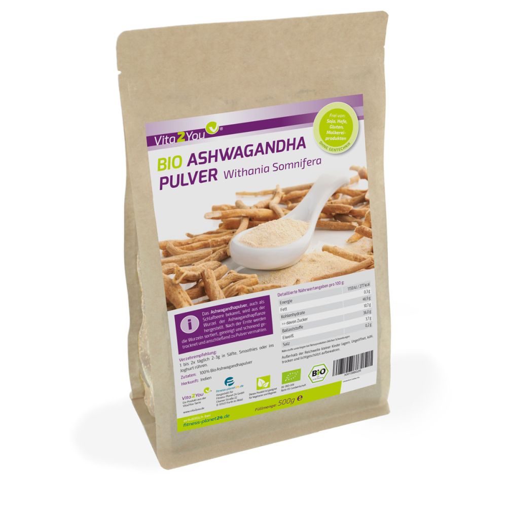 Vita2You Bio Ashwagandha Pulver Premium Qualität 500g