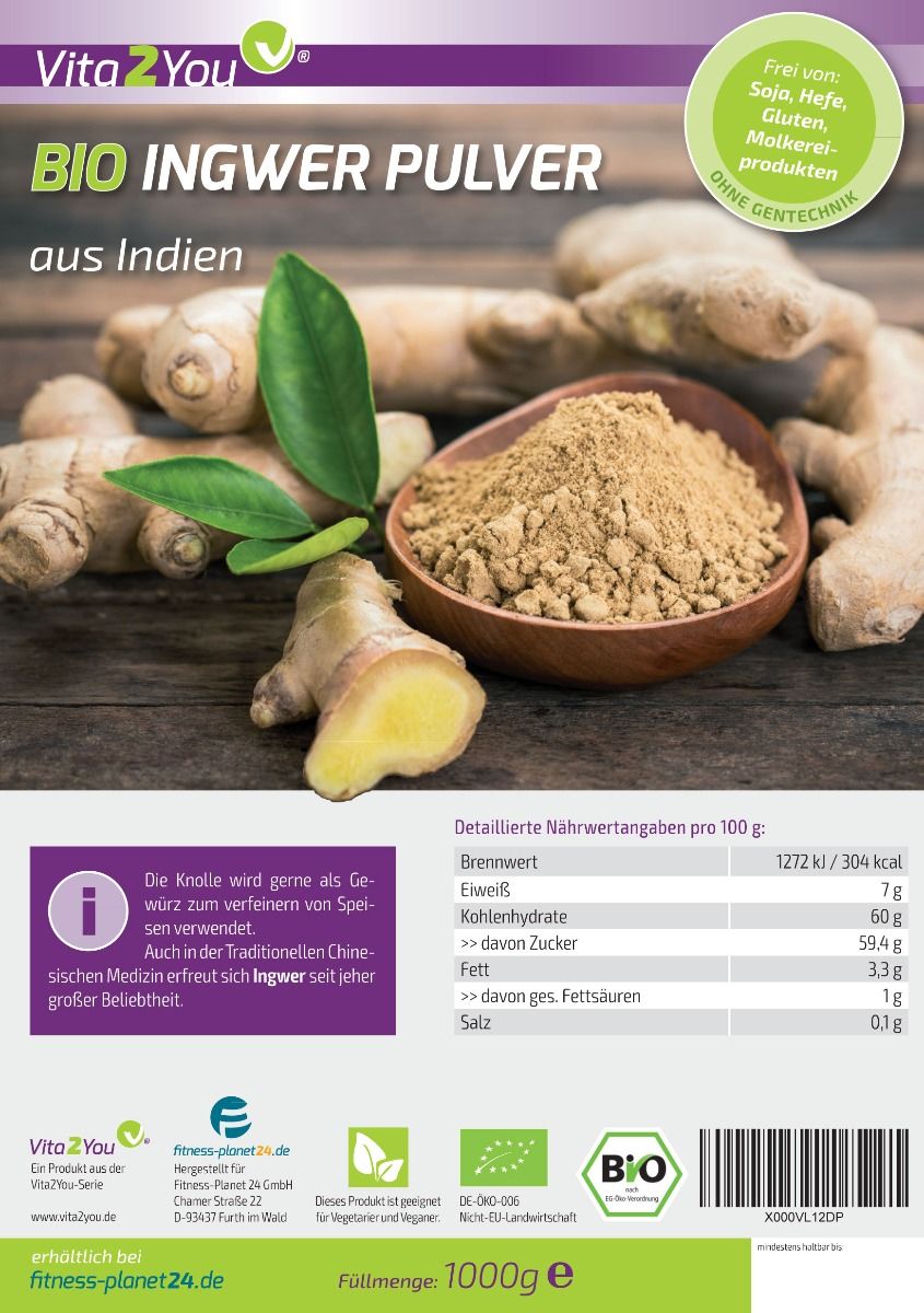 Vita2You Bio Ingwer Pulver aus Ökologischen Anbau 1 kg