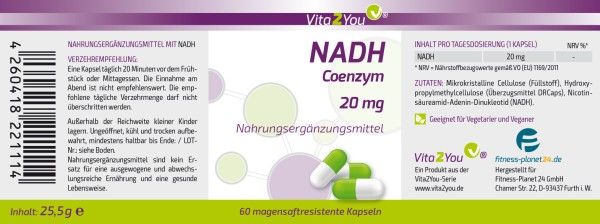 - NADH von Vita2You liefert 20mg