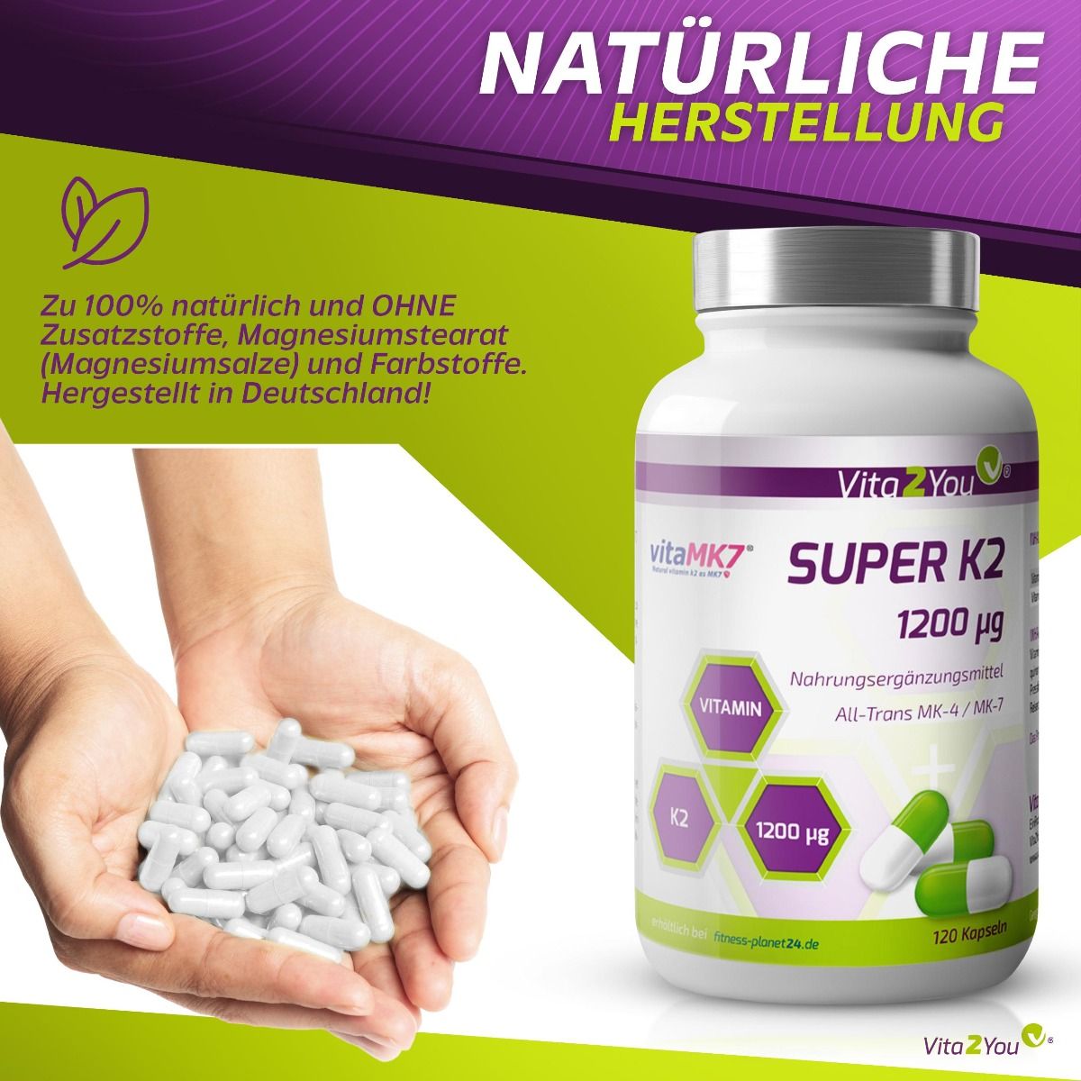 Vita2You Super K2 - 1200 mcg Vitamin K2 - 120 Kapseln - Premium Qualität