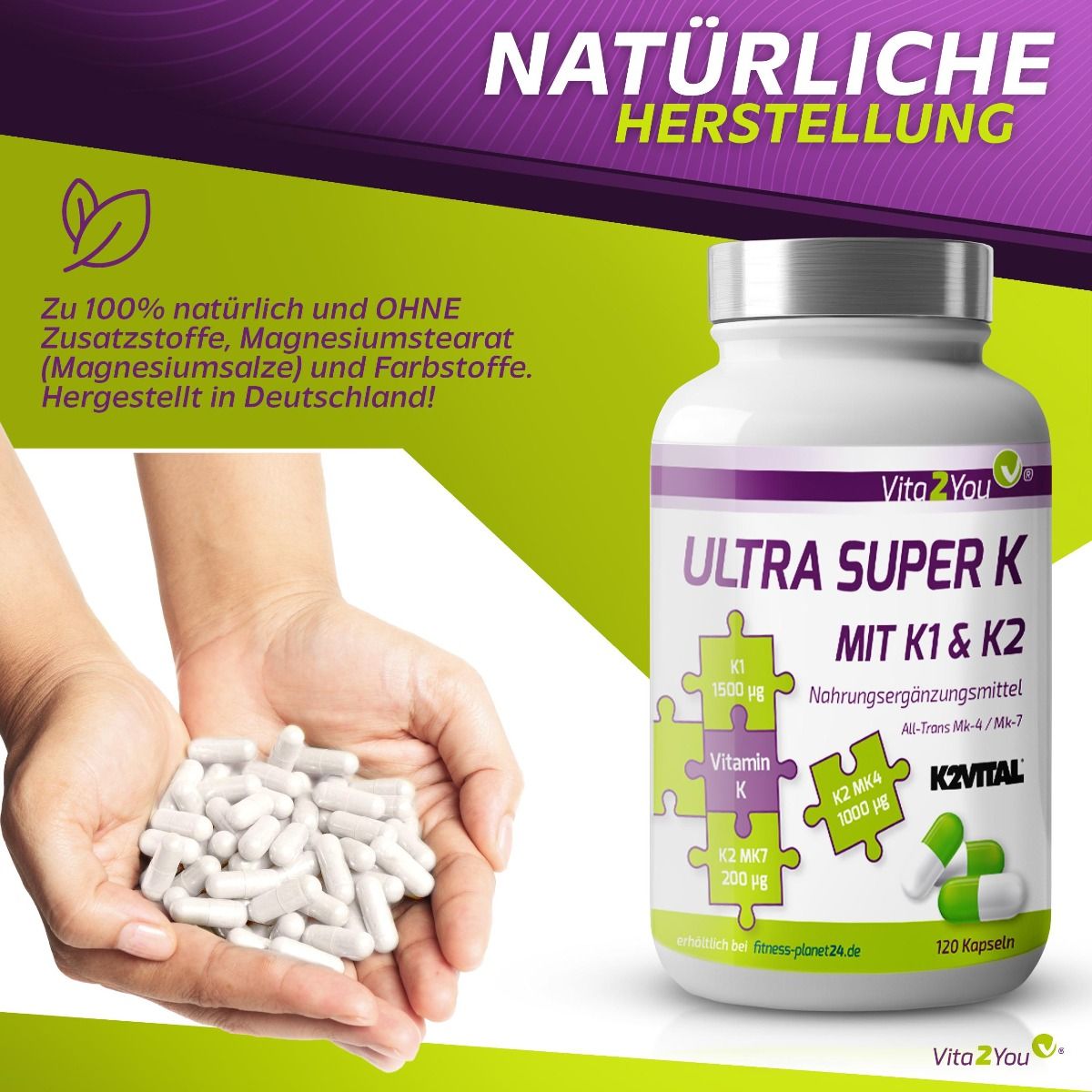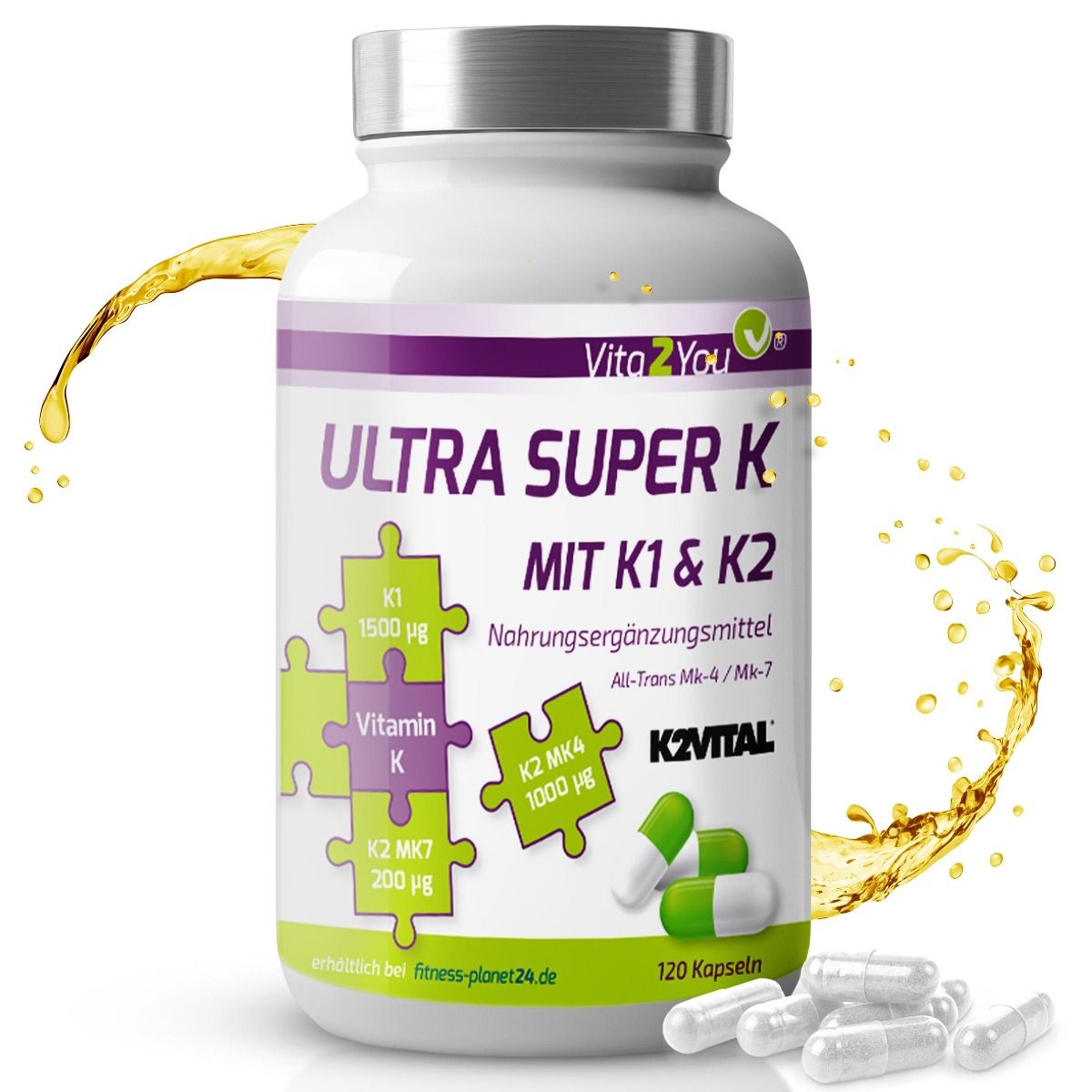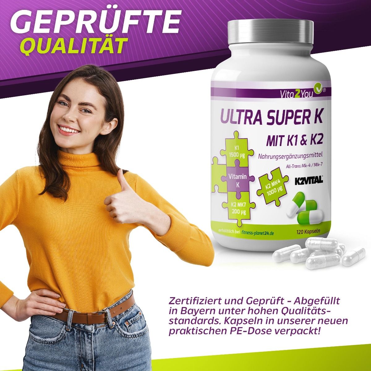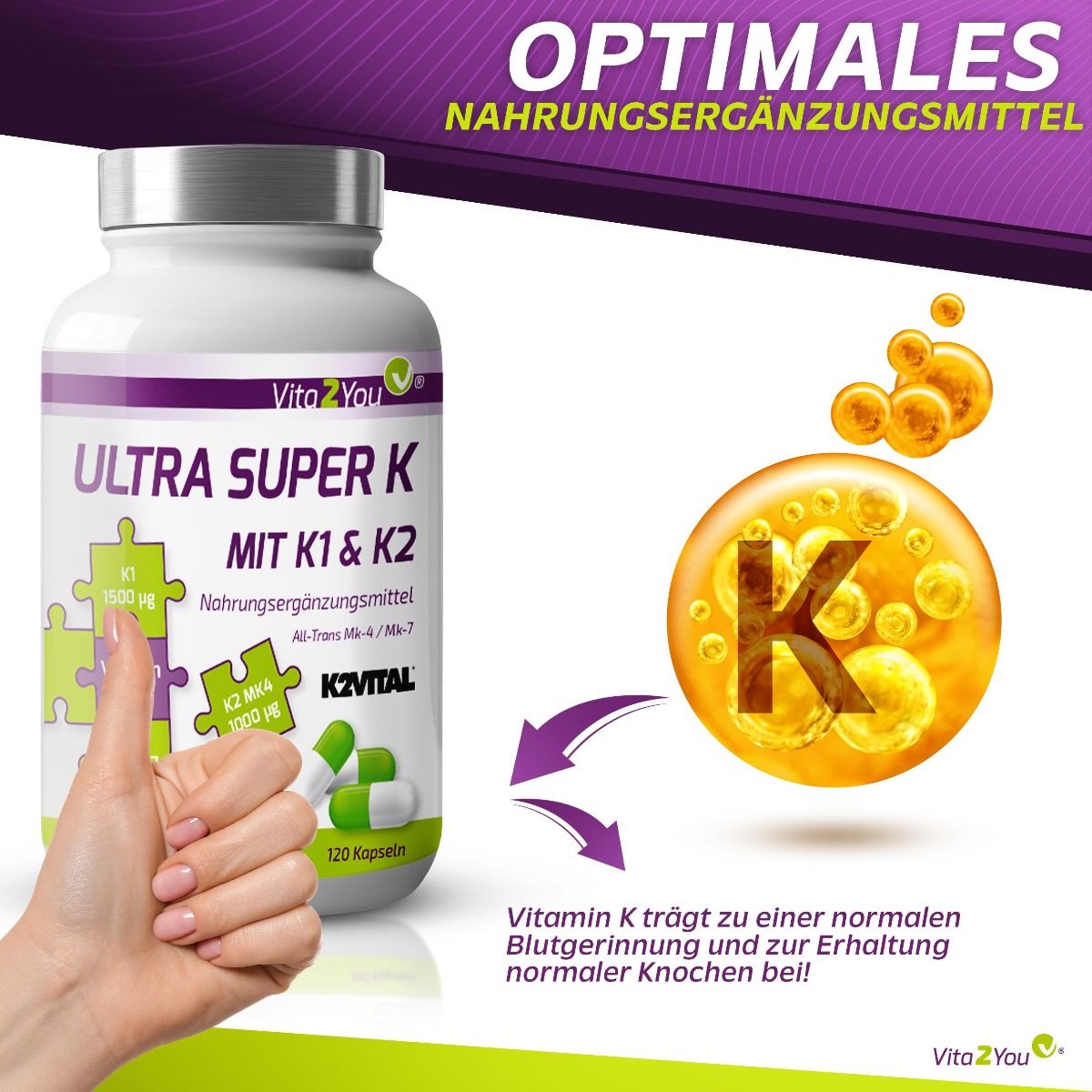 Vita2You Ultra Super K - 120 Kapseln - 2700mcg Vitamin K - Vitamin K2 und K1