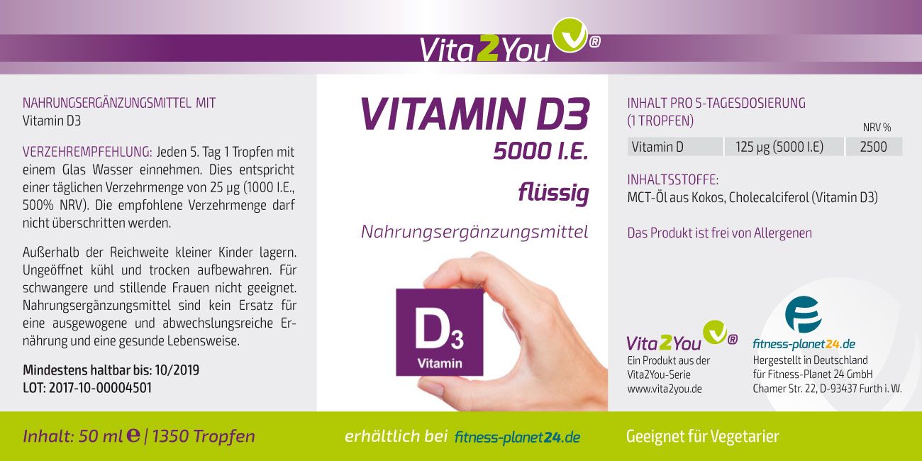 Vita2You Vitamin D3 5000 IU (1700 Tropfen) flüssig 50ml