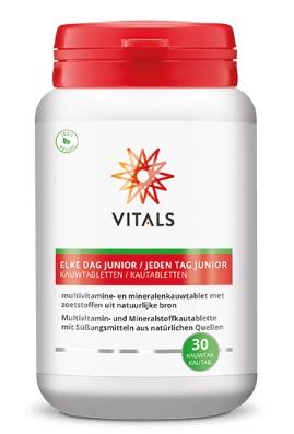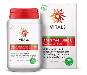 Jeden Tag Junior ist eine Kautablette in Form eines kleinen Elefanten mit Erdbeergeschmack, die speziell für Kinder ab 3 Jahren entwickelt wurde. Das Produkt wurde auf Grundlage neuester wissenschaftlicher Erkenntnisse entwickelt, abgestimmt auf aktuelle Daten zum Ernährungsstatus in Westeuropa und optimale Verzehrsmenge pro Nährstoff. Jeden Tag Junior zeichnet sich durch seine Zusammensetzung, Dosierung und Resorbierbarkeit aus. Die Kautablette enthält fast die gleichen hochwertigen Substanzen wie Jeden Tag für Erwachsene, ist aber in der Dosis an die Bedürfnisse von (kleinen) Kindern angepasst. Eine Tablette enthält ganze 15 μg Vitamin D3 (separate Vitamin-D-Tropfen sind daher nicht mehr erforderlich). Außerdem enthält es 60 mg Magnesium und 120 mg Calcium aus natürlichen Quellen. Kurzum, Jeden Tag Junior hält dem Vergleich mit anderen Multivitaminen für Kinder mit Bravour stand!