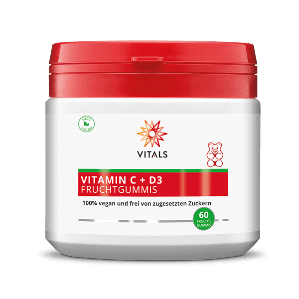 Nicht jedem fällt es leicht, ein Nahrungsergänzungsmittel einzunehmen. Für diese Menschen hat Vitals jetzt die ideale Lösung. Ein kombiniertes Vitamin C- und Vitamin D3-Präparat in Form eines köstlichen Fruchtgummis mit Waldfruchtgeschmack. Ohne synthetische Süßungsmittel oder Zuckerzusatz! Dieses Produkt in Form eines kleinen Bären ist besonders für Kinder mit ihren oft anspruchsvollen Geschmacksnerven geeignet. Auf diese Weise erhalten sie weiterhin ihre tägliche Dosis Vitamin D und zusätzliches Vitamin C zur Unterstützung des Immunsystems. Aber auch Jugendliche, Erwachsene oder ältere Menschen, die Schwierigkeiten beim Schlucken haben oder einfach nur ein leckeres Fruchtgummi bevorzugen, können dieses Produkt nutzen. Zulässige gesundheitsbezogene Angaben: