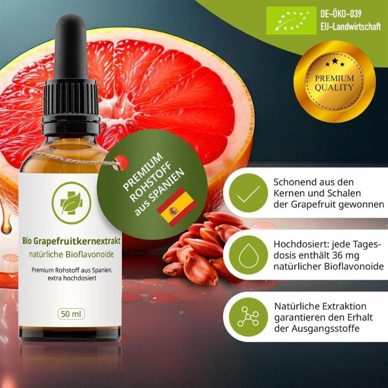 Bio Grapefruitkernextrakt Tropfen - hochdosiert mit 36 mg natürlichen Bioflavonoide |