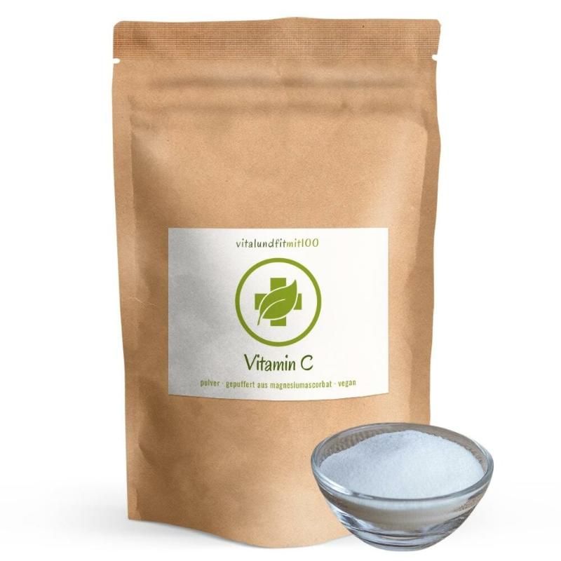 Vitalundfitmit100 Vitamin C Pulver gepuffert (Magnesiumascorbat) 200 g