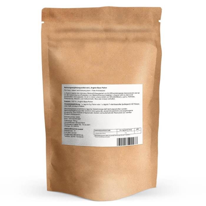 Vitalundfitmit100 L-Arginin Base Pulver (pflanzlich) 500 g