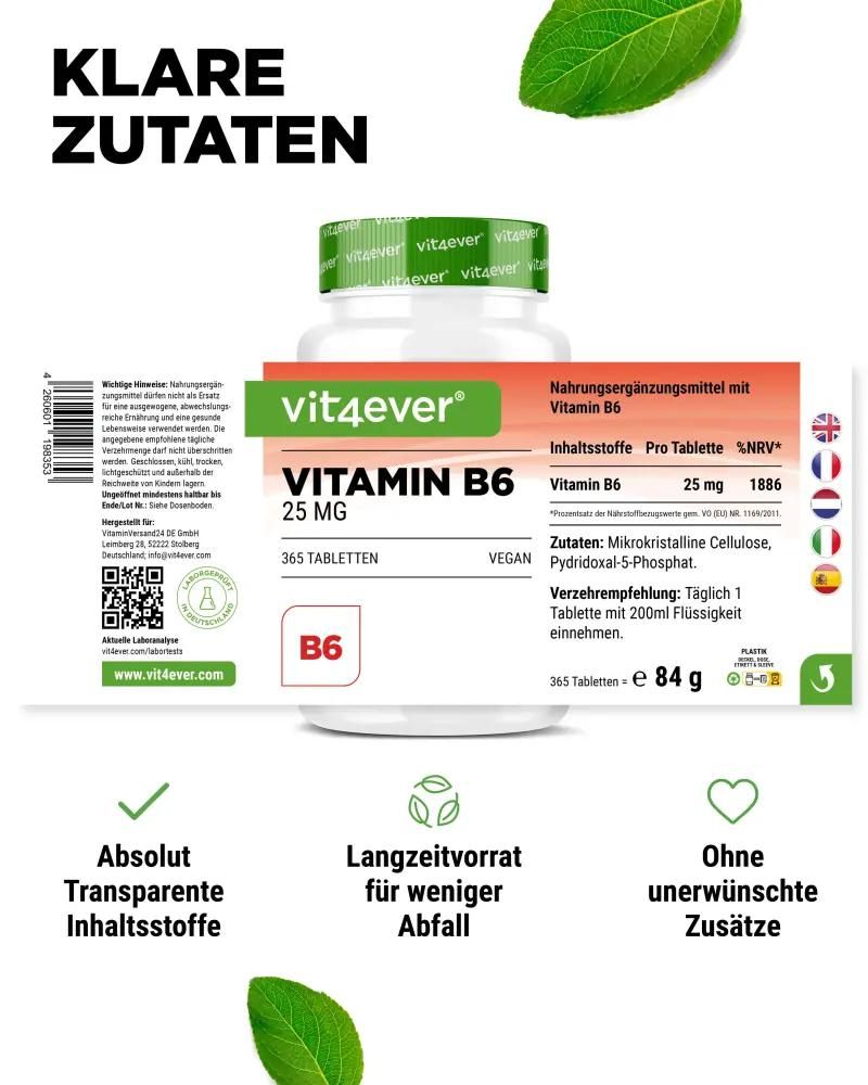 Vit4ever Vitamin B6 als Pyridoxal-5-Phosphat (P-5-P) 25 mg 365 Tabletten