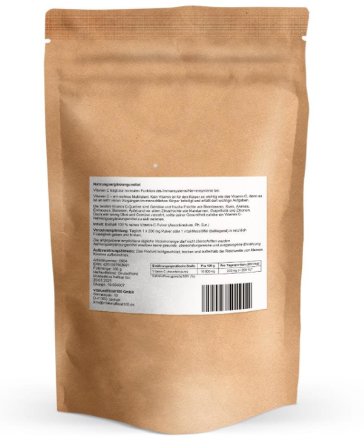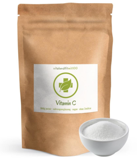 Enthält 100 % reines Vitamin-C Pulver |