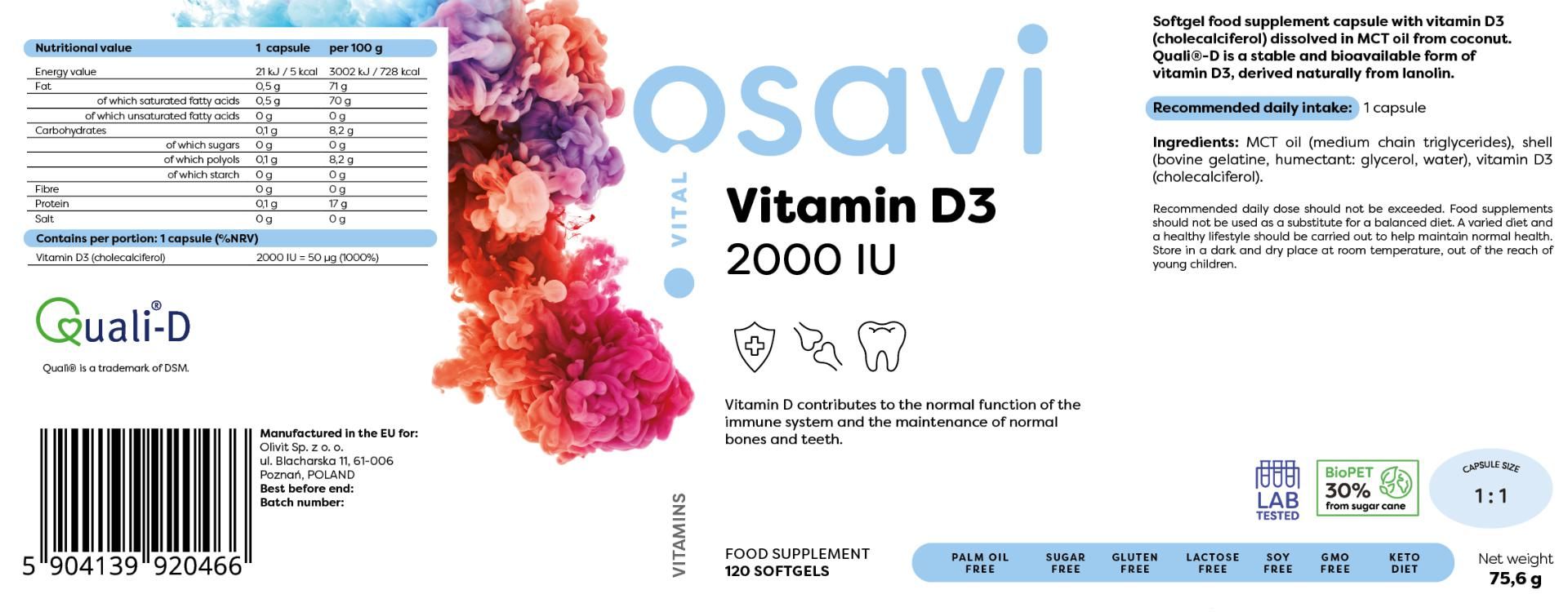 Osavi Vitamin D3 - 2000IU - 120 softgels