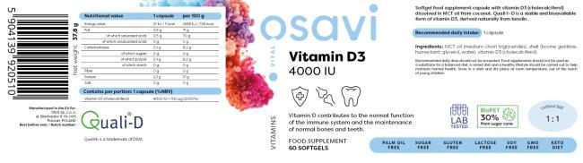 Osavi Vitamin D3 - 4000IU - 60 softgels