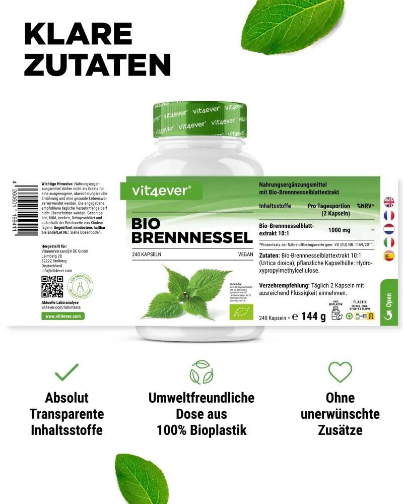 Vit4ever Bio Brennnessel Extrakt - 500 mg, 240 Kapseln